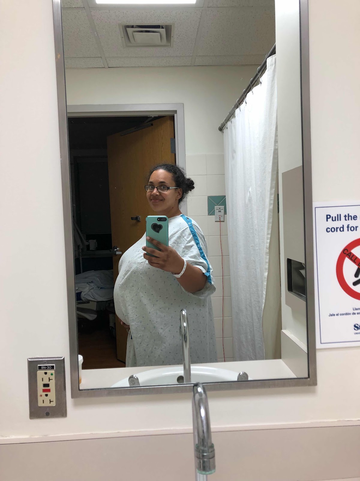 The contractions started soon after the check but were manageable. I spent my time walking around in the room, bouncing on a yoga ball, texting with Papa, sending Marco Polo videos to relatives, and watching Everybody Loves Raymond (deja vu to when I was in labor with our oldest 12 years ago!). At my next check at 7cm.